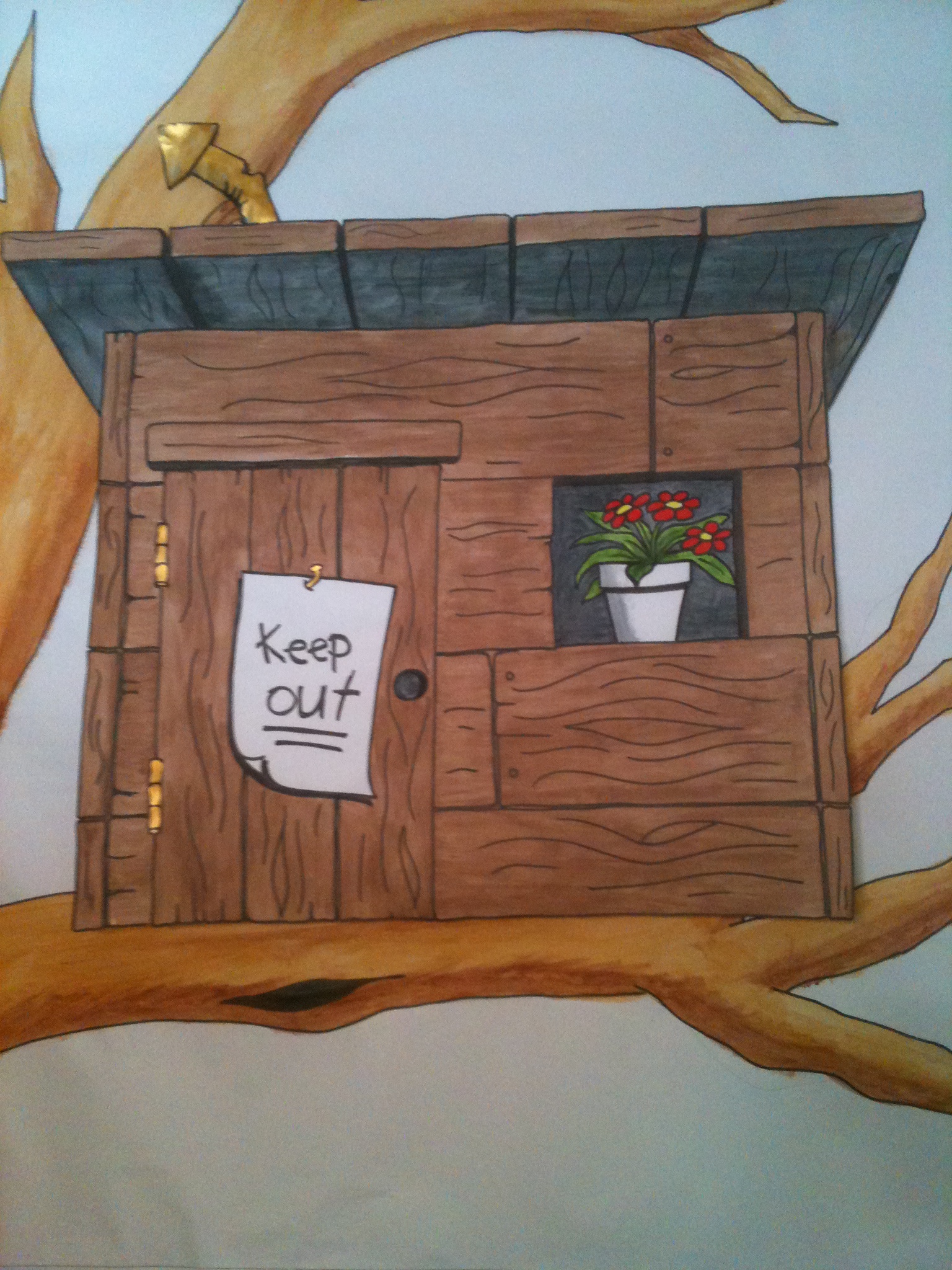 After the old junk-food advertisements were (thankfully!) taken down from above the school canteen, it was looking a little drab, so a friend and I painted this sign one weekend. I drew the lettering freehand on a large piece of paper, then cut out the letters to make a stencil. Unfortunately, it happened to be very windy on the day I tried to put it up on the wall, so my struggles with the enormous cut-out would have been hilarious if there had been any onlookers (though the swearing wasn’t pretty). Somehow I managed to stick it up long enough to draw the outlines on the wall… eventually.