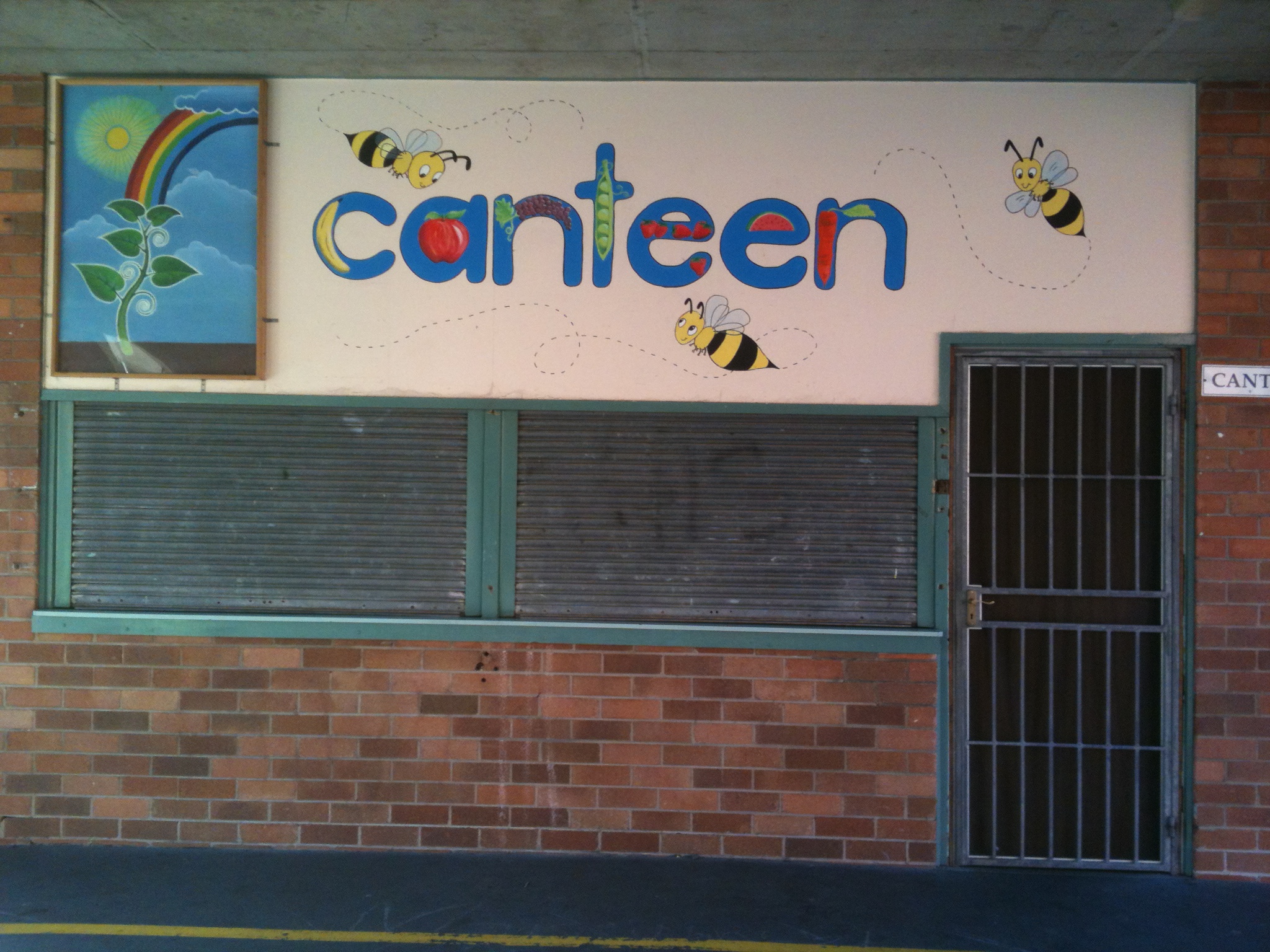 Our little school canteen needed a new sign, but there wasn’t much room, so I bought a plank of wood to attach to the wall.